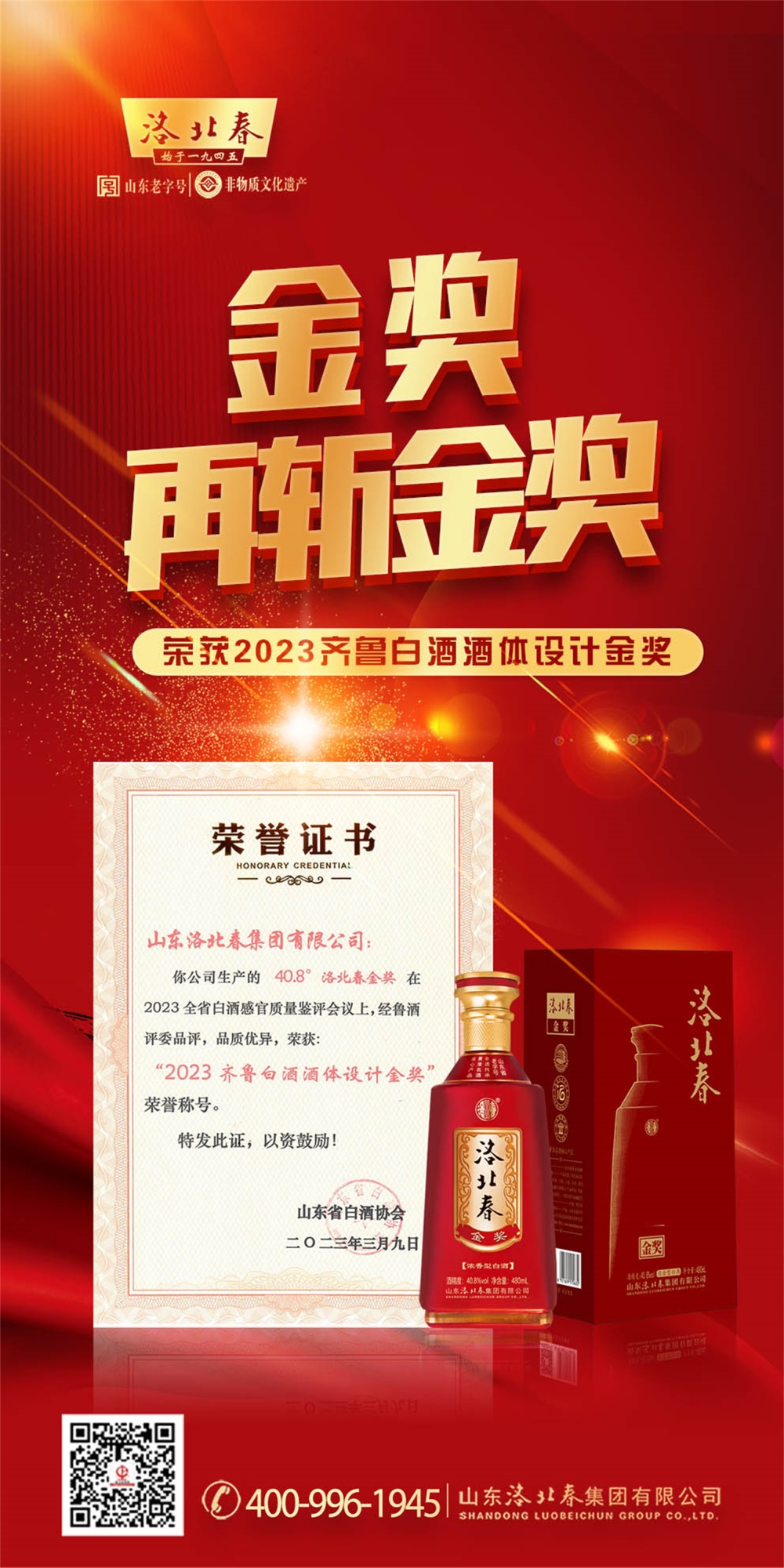 白酒質(zhì)量鑒評大會上,經(jīng)來自魯酒企業(yè)生產(chǎn)質(zhì)量一線的國家級白酒評委、省級白酒評委以及專業(yè)技術(shù)人員多輪品鑒,山東洛北春集團生產(chǎn)的40.8°洛北春金獎和53°大師級醬香分別榮獲“2023 齊魯白酒酒體設(shè)計金獎”、“2023 齊魯白酒優(yōu)級”榮譽稱號。