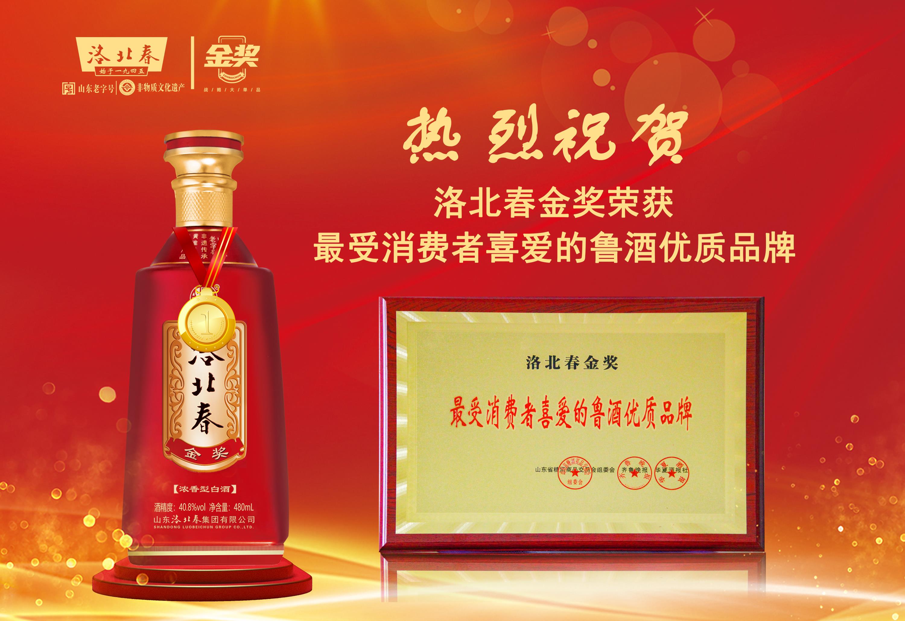 ▲(洛北春金獎)榮獲最受消費(fèi)者喜愛的魯酒優(yōu)質(zhì)品牌